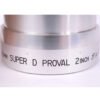 16mm projector lens made in Japan marked 2”. AKA Singer Super Bright, Super D Proval. Barrel distortion. See also UK-made version.
