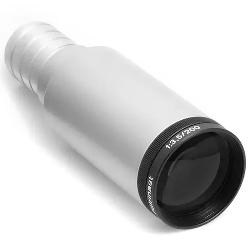 Silver metal-barrel lens with black nose for Fantax 600A slide projector. [Liesegang Cat 310 01 0185]. Kindermann version pictured [Kindermann Cat 1337].