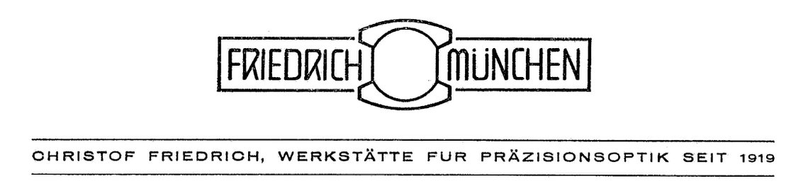 Collectors and eBay sellers outside central Europe may erroneously refer to the company as ‘Friedrich Munchen’ – misled by the ‘C. Friedrich München’ legend commonly printed on lens fascias. The ‘C.’ easily comes adrift or can be misjudged as a model designator, and the convention of mid-century German manufacturers to attach their home manufacturing district as a suffix to the family name of the maker is sometimes overlooked. See also Will Wetzlar – neither the cousin of Leitz Wetzlar nor the brother of Docter Wetzlar!
