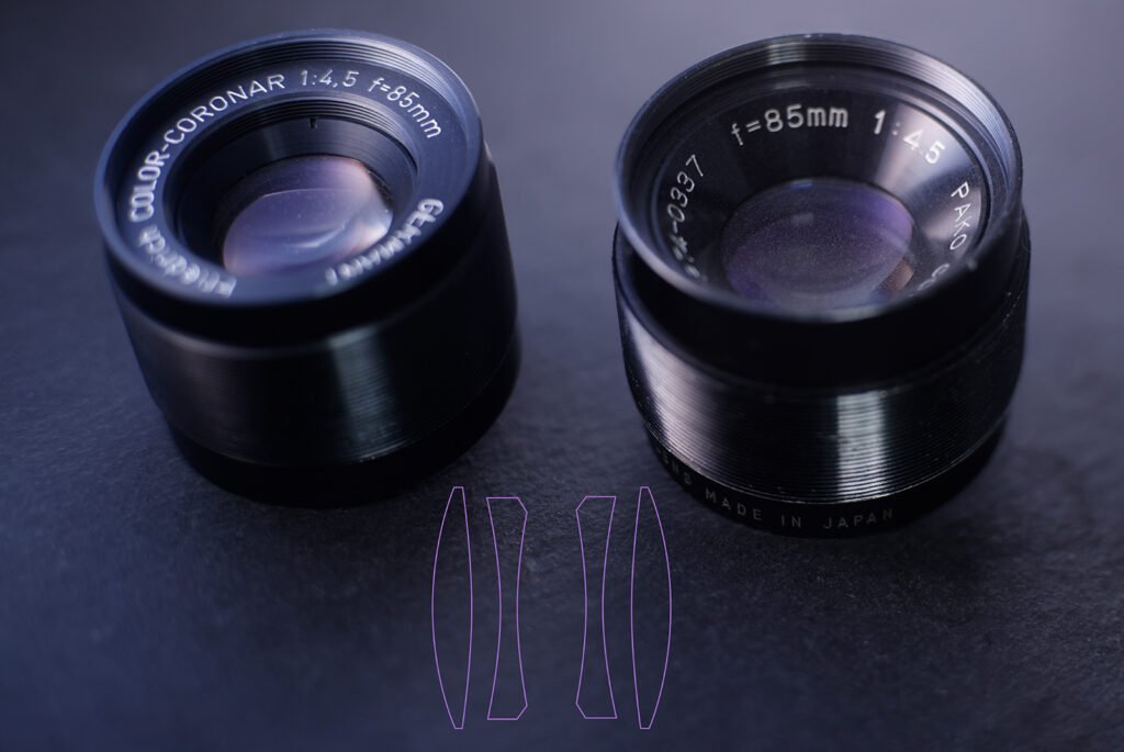 Here’s a comparison with a Pako-labeled lens in a comparable focal length, which also is a 4 elements in 4 groups Dialyte design lens, though made in Japan (rumored by Olympus):
