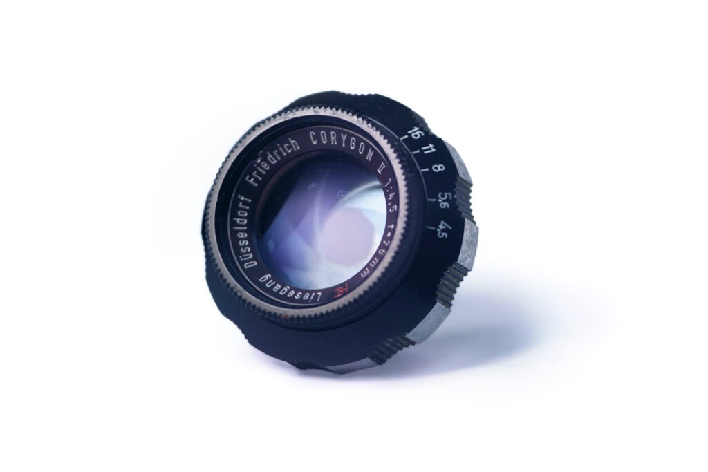 Why this lens is called Corygon II is anybody’s guess… it doesn’t seem to feature a more complex construction or include any special feature. It’s possible that it was just used to distinguish the lenses made for Liesegang but even that doesn’t make any sense, given that Corygon (non II) lenses were used simultaneously on Liesegang enlargers as well. It’s one of the very few lenses, which has both manufacturers featured on the inscription.