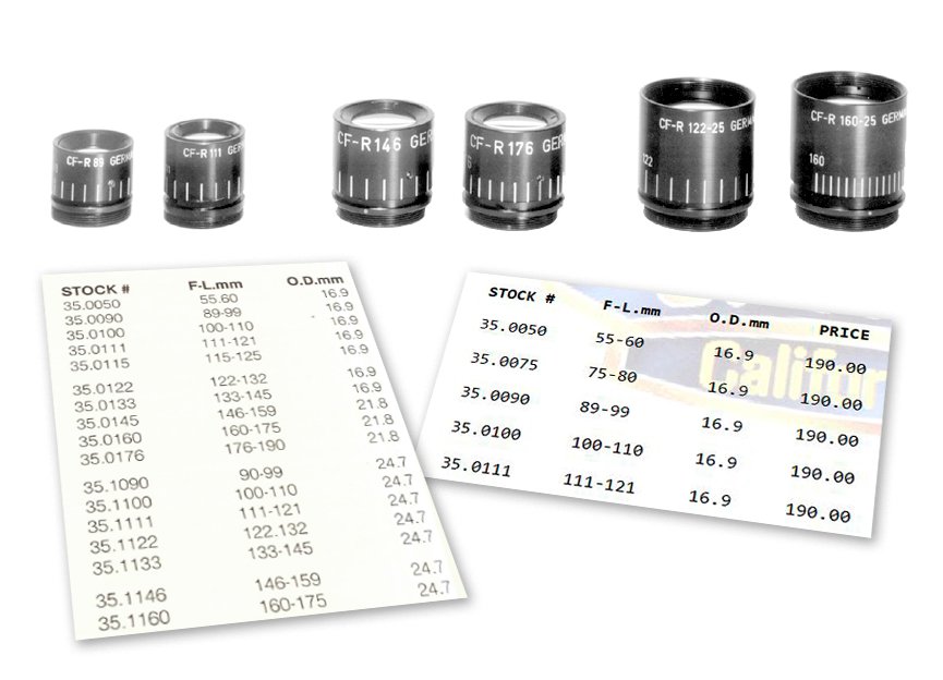 - There is indeed a Friedrich lens with variable focal length (see CF-R series above) or even several, though they were rarely labeled as such (perhaps internally though) and thus not really associated with C. Friedrich. As far as I know Rolyn only sourced lenses from two manufacturers from Germany: Rodenstock and C. Friedrich. From their looks it’s hard to tell, but the CF on the lenses shown below might even stand for C. Friedrich… (Update: This suspicion turned out to be true, because soon after I found some evidence, thanks to a kind person on reddit)